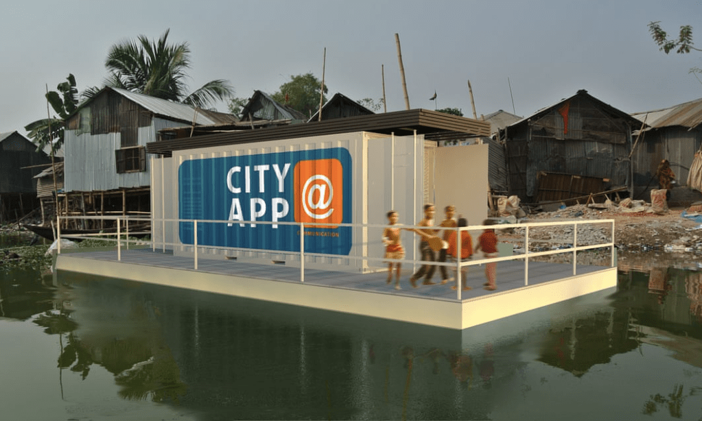 Instead of treating water as a threat, maybe we should work with it in order to effectively adapt and anticipate. This is at least what Koen Olthuis thinks. The founder of Waterstudio is trying to improve living standards in waterside slums by providing fundamental services (education, sanitation, power) in shipping containers made of waste plastic bottles. These “city apps” float and are easy to install and launch. They are therefore a good investment for governments as well as for private investors who are ordinarily reluctant to invest in flood plains.